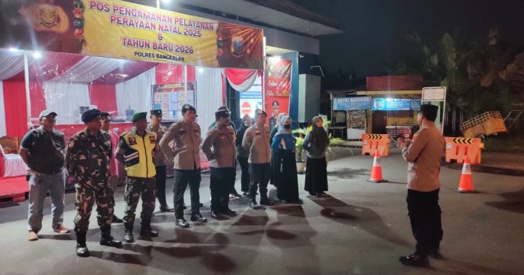 BANGKALAN - Dalam rangka pengamanan dan pelayanan Perayaan Natal 2025 serta Tahun Baru 2026, anggota Koramil 0829-03/Kamal melaksanakan kegiatan di Pos Penanganan Pelayanan (PosPam) Nataru di pintu masuk Pelabuhan Barat ASDP, Desa Kamal, Kecamatan Kamal, Kabupaten Bangkalan, Minggu malam (28/12/25).